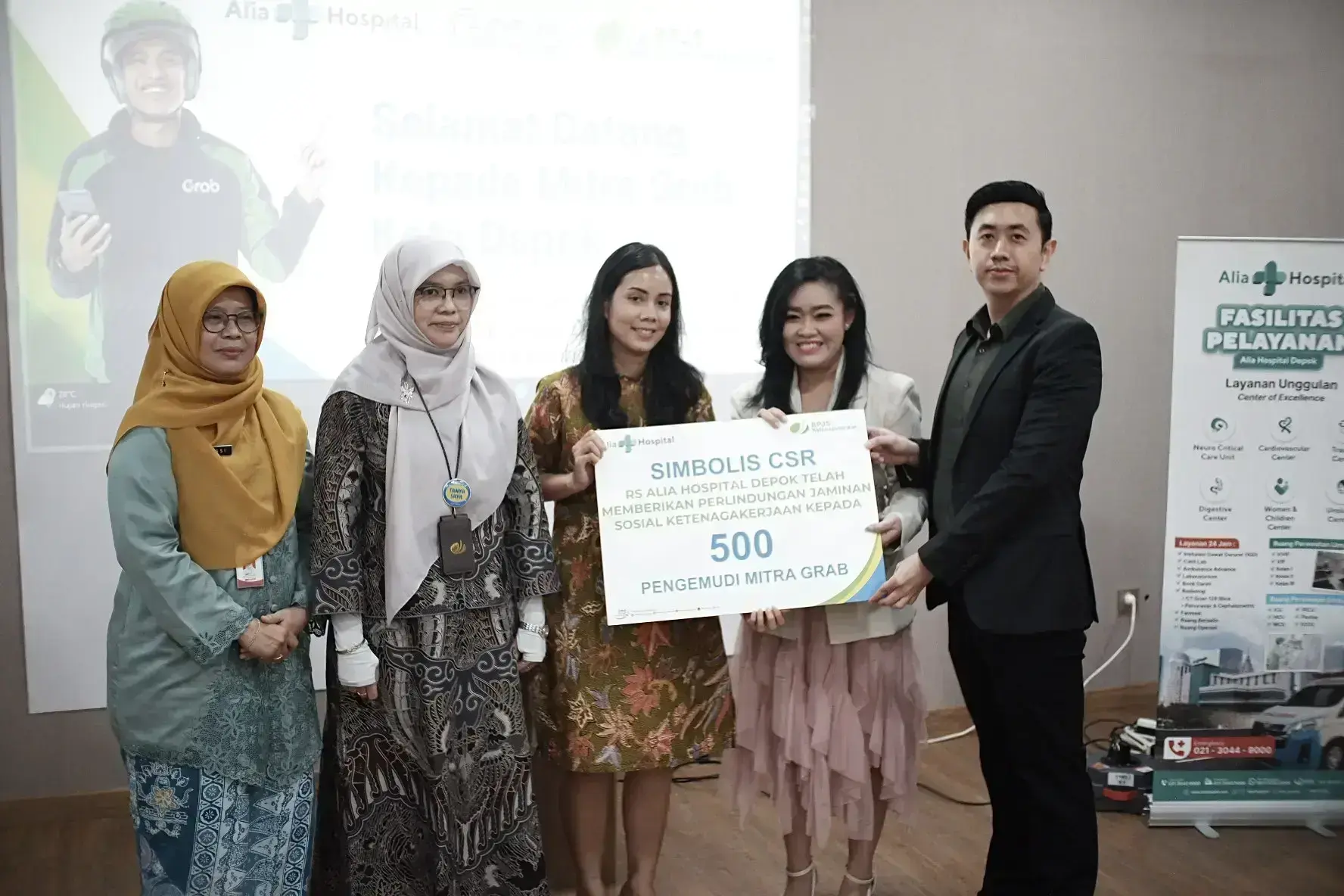 Depok – Alia Hospital melalui program Corporate Social Responsibility (CSR) memberikan bantuan perlindungan jaminan sosial ketenagakerjaan kepada 500 pengemudi ojek online (ojol) mitra Grab di Kota Depok.