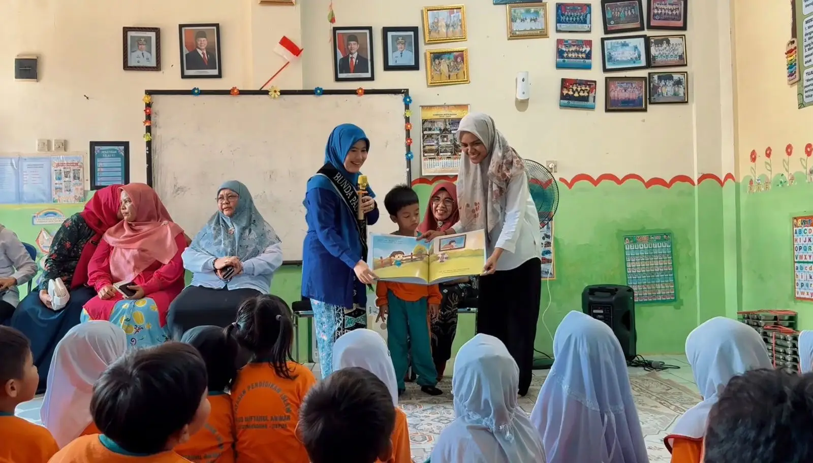 Dengan pendekatan yang hangat dan mendongeng, Cing Ikah membacakan buku berjudul “Mengenal Sera Mijel Bersama Boni” di hadapan anak-anak.