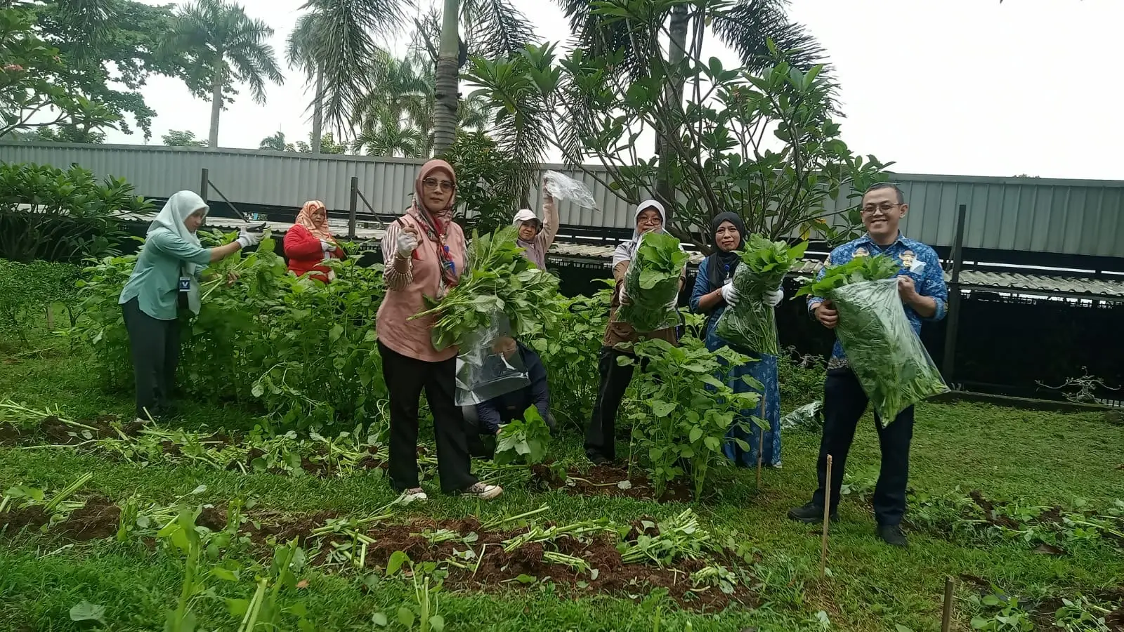 Paket hasil panen tersebut berisi berbagai jenis sayuran seperti kangkung, bayam merah, bayam hijau, pokcoy, kemangi, terong, sawi, cabai hijau, cabai oranye, dan selada. Semua hasil kebun merupakan hasil gotong royong warga dalam mengelola lahan produktif di tengah kawasan perkotaan.