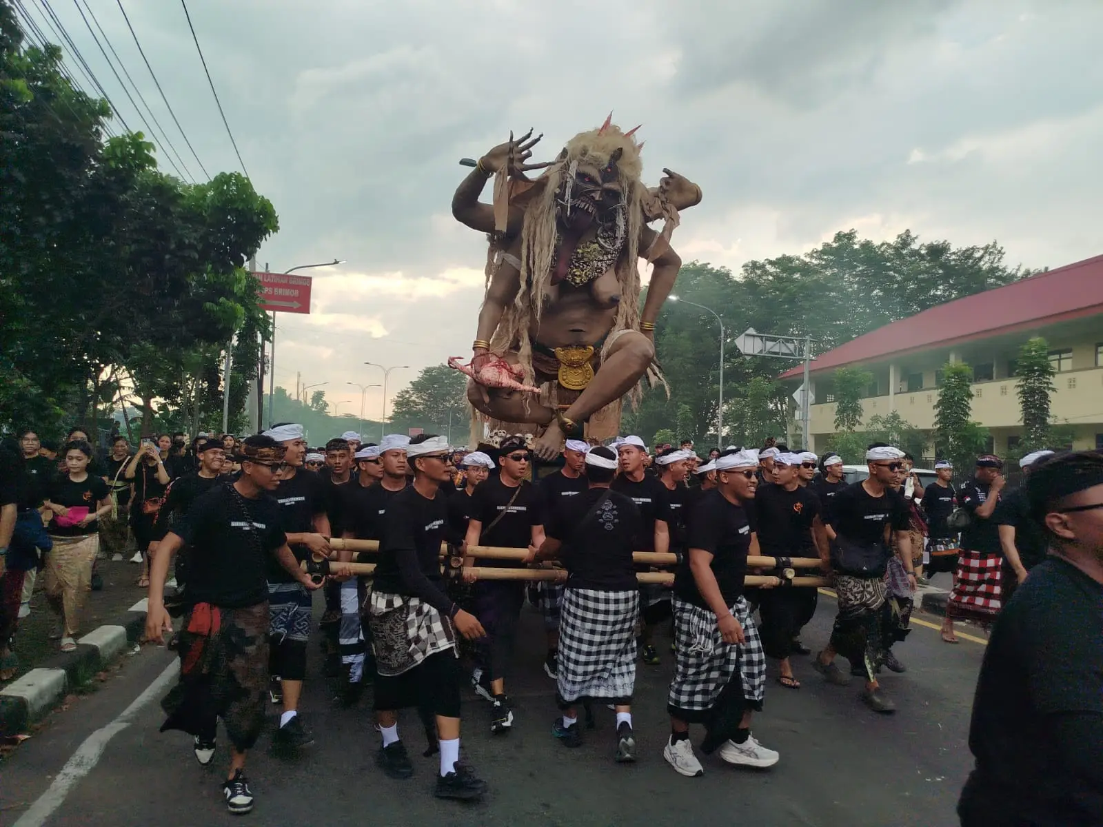 Tepat pukul 16.30 WIB, prosesi dimulai. Sorotan utama tertuju pada lima figur ogoh-ogoh yang diusung oleh para pemuda. Dua sosok raksasa berukuran masif mendominasi barisan, didampingi oleh tiga ogoh-ogoh berukuran kecil yang melambangkan keberagaman sifat negatif yang harus dilepaskan manusia.