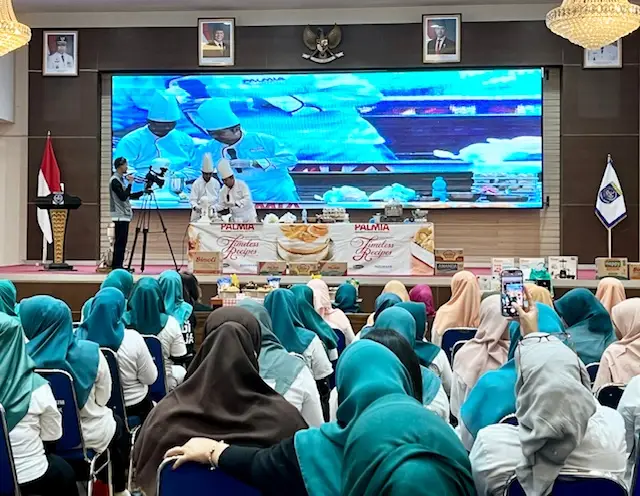 Depok (23/10/2025) – Aula Lantai 10 Gedung Dibaleka 2 Depok berubah menjadi workshop kuliner yang bersemangat pada Kamis (23/10/25). Ibu-ibu dari Tim Penggerak PKK dan Dharma Wanita Persatuan (DWP) Kota Depok, termasuk perwakilan kelurahan dan kecamatan, larut dalam Baking Class interaktif yang difasilitasi oleh Palmia bersama Chef Lukman.