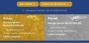 Harga emas kembali merangkak naik dan bahkan menembus Rp3.003.000 per gram pada 28 Januari 2026. Menariknya, pada hari tersebut emas mengalami dua kali kenaikan dalam satu hari: