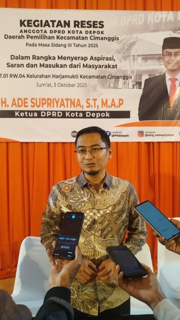 Depok (4/10/2025) – Ketua DPRD Kota Depok, Ade Supriyatna, menggelar kegiatan Reses Masa Sidang III Tahun 2025 di wilayah Kavling Pertamina, Kelurahan Harjamukti, Kecamatan Cimanggis, pada Jumat (3/10/2025). Dalam kesempatan itu, ia mendengarkan langsung berbagai keluhan dan harapan warga dari Kelurahan Curug dan Harjamukti.