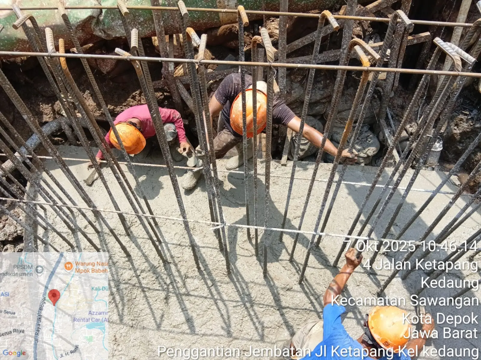 “Per 1 Oktober 2025, pengecoran abutment P2 sisi arah Jalan Abdul Wahab telah selesai dilaksanakan. Saat ini, pekerjaan memasuki tahap pengecoran pilecap P1 arah Kelurahan Kedaung,” ungkapnya, menunjukkan progres signifikan.