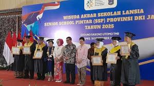 Di usianya yang ke-87, Nenek Erni membuktikan bahwa semangat belajar tidak mengenal batas usia. Ia resmi menjadi wisudawan tertua dalam Wisuda Akbar Sekolah Lansia Senior School Pintar (SSP) tingkat Provinsi DKI Jakarta yang digelar di Sasono Utomo, TMII Jakarta Timur, Kamis (18/9/2025).