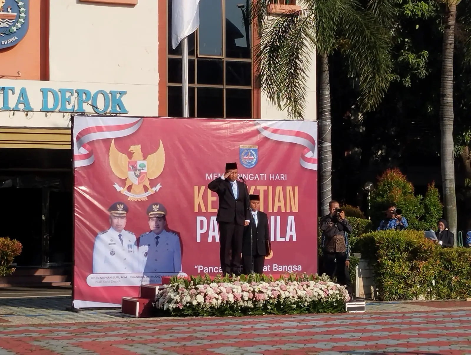 Wali Kota Depok, Supian Suri, memimpin upacara Hari Kesaktian Pancasila 2025 di Lapangan Balai Kota, Rabu (01/10/25) pagi. Dalam upacara tersebut, ia bertindak sebagai inspektur dan turut membacakan teks Pancasila di hadapan peserta.