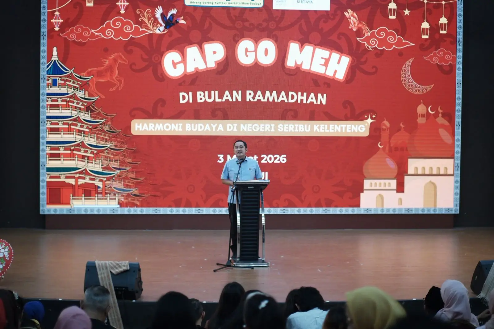 Wakil Wali Kota Depok, Chandra Rahmansyah, menghadiri perayaan Cap Go Meh 2577 Kongzili yang digelar oleh Yayasan Bakul Budaya Nusantara di Fakultas Ilmu Budaya Universitas Indonesia, Selasa (3/3/2026).