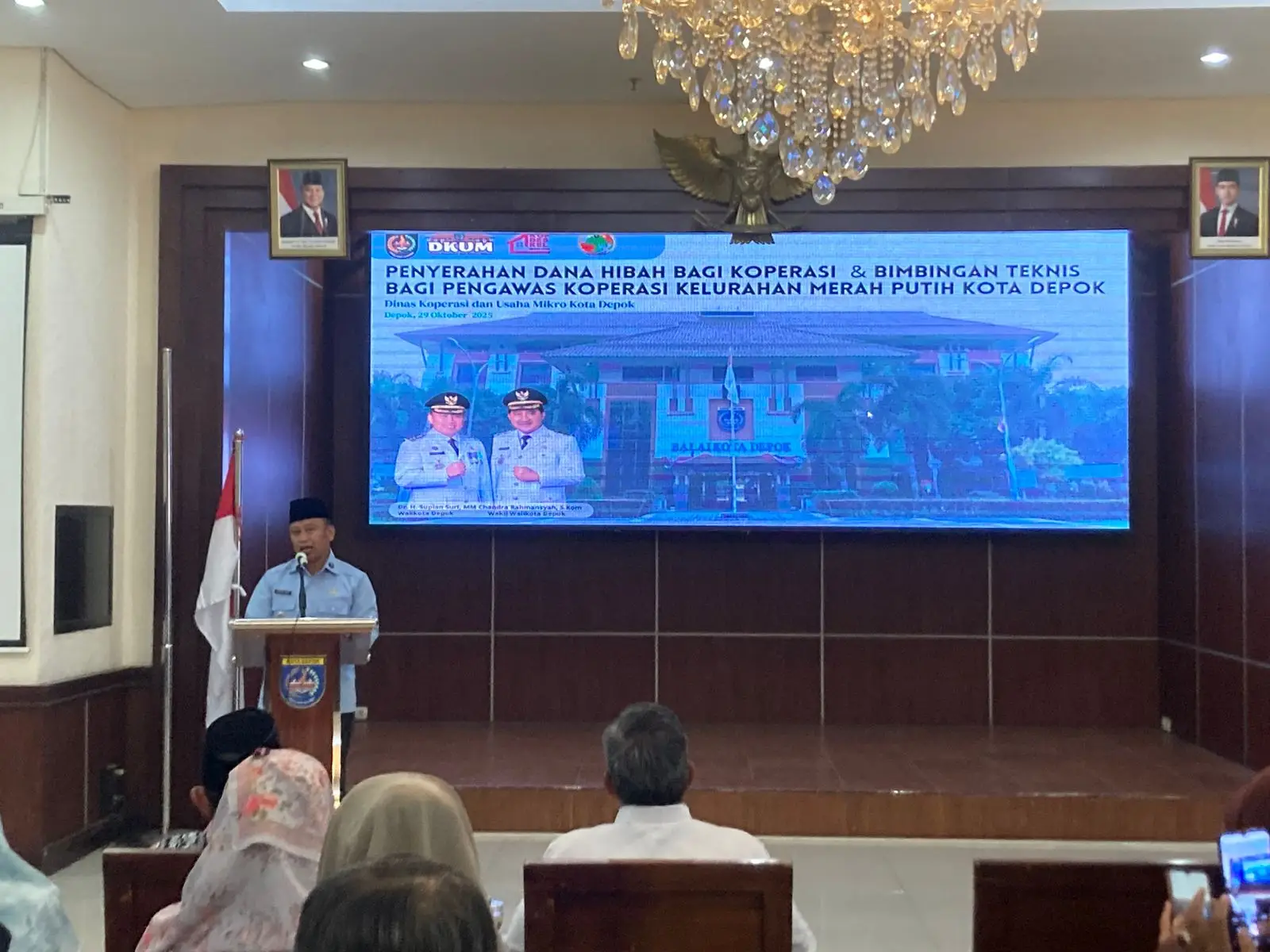 Depok (29/10/2025) – Wali Kota Depok, Supian Suri, mengajak seluruh pengurus Koperasi Merah Putih untuk menjadikan setiap langkah dan pekerjaan mereka sebagai bentuk ibadah dan pengabdian kepada masyarakat. Pesan ini disampaikannya saat membuka kegiatan Penyerahan Dana Hibah dan Bimbingan Teknis (Bimtek) Pengawas Koperasi Kelurahan Merah Putih (KKMP) yang digelar di Aula Teratai, Balai Kota Depok, Rabu (29/10/25).