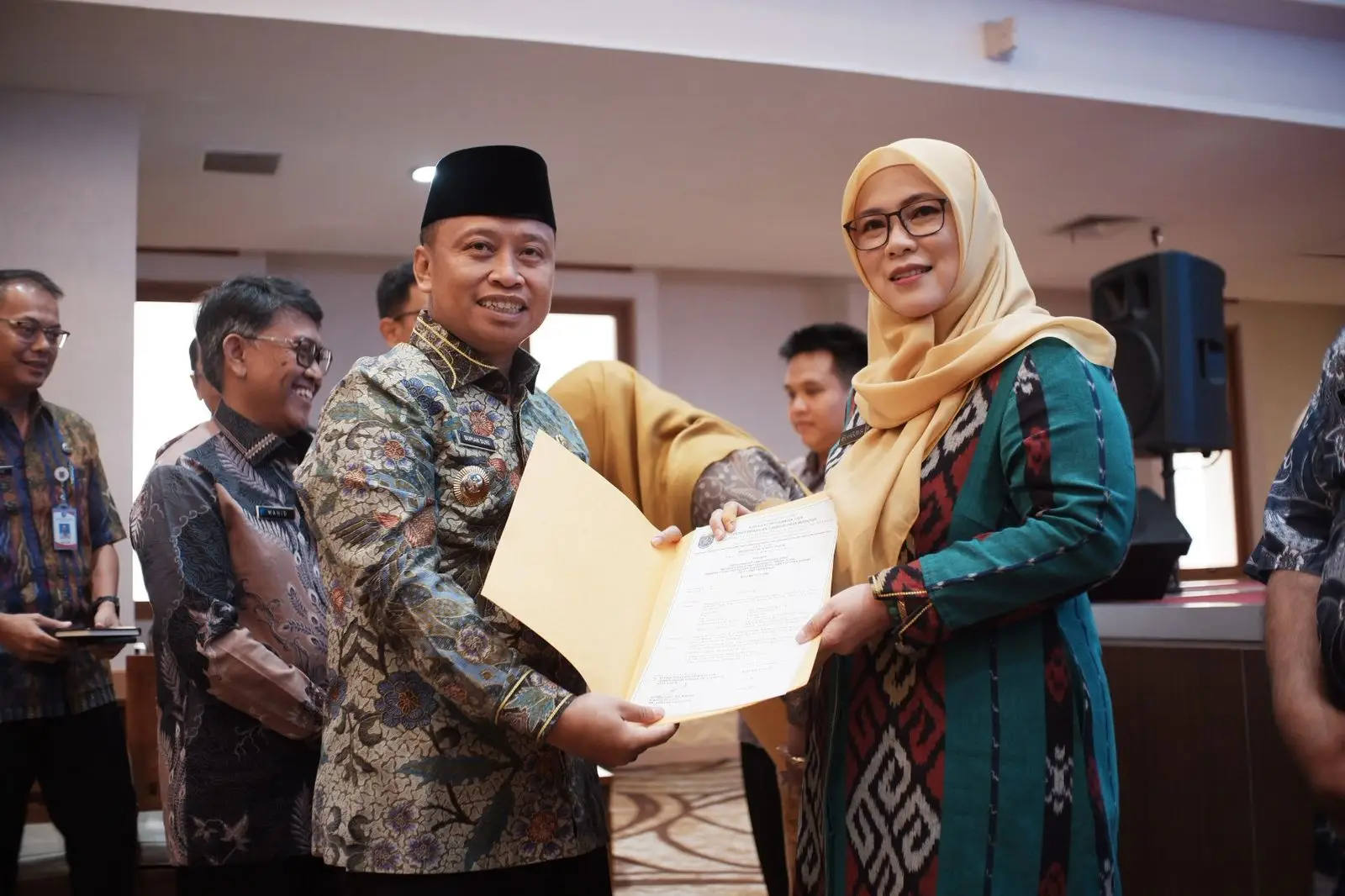 Depok — Wali Kota Depok, Supian Suri, menyerahkan Surat Keputusan (SK) Kepala Sekolah serta melaksanakan Serah Terima Jabatan (Sertijab) Pengawas Sekolah di Aula Lantai 10 Gedung Dibaleka II, Balai Kota Depok, Jumat (6/3/2026).